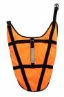 Die “Happy Dog” wurde speziell für Ihr Haustier entwickelt und besteht aus einem breiten orangenem Element und einem schmaleren Element, dass unter dem Hund hindurchgeht. Fixiert werden die beiden Elemente mit zwei Riemen. Das grelle Orange erhöht die Sichtbarkeit der Schwimmweste im Wasser, bei allen Witterungen. Auf der Oberseite des orangenen Elements befinden sich ein Griff, der Ihnen dabei helfen wird, Ihren Hund aus dem Wasser zu ziehen und ein D-Ring, um eine Leine anzubringen. Reflektierende Streifen am Griff verbessern noch einmal zusätzlich die Sichtbarkeit des Hundes. Das schmalere Element an der Unterseite sorgt für erhöhten Tragekomfort der Schwimmweste für Ihren Hund, da Sie den empfindlichen Bauch des Hundes vor Kontakt mit den Fixierriemen schützt. Die beiden Fixierriemen sind in der Länge einstellbar und dadurch lässt sich die Schwimmweste perfekt auf Hunde verschiedener Form und Größe anpassen. Jeder Riemen kann mit einer Schnalle schnell geschlossen und geöffnet werden. Das Innenleben der Schwimmweste besteht aus einem Schaumstoff, der für Auftrieb sorgt und die Körpertemperatur des Hundes stabil hält.